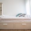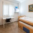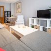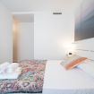 El apartamento se sitúa en un edificio con ascensor. Cuenta con un amplio salón comedor, un dormitorio con cama doble de matrimonio con baño incluido tipo suite con ducha, un dormitorio con 2 camas individuales tipo nido y un tercer dormitorio con una cama individual convertible en cama doble, un baño con bañera y cocina completa con lavadero.