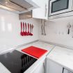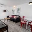 El apartamento cuenta con un amplio dormitorio con una cama doble de matrimonio, un amplio salón - comedor con sofá cama doble, una pequeña cocina completamente equipada, así como un baño con ducha. El apartamento cuenta también con una terraza privada con dos tumbonas y sombrilla y con unas agradables vistas de la ciudad.