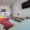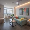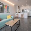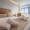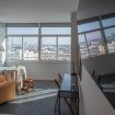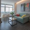 El apartamento se ubica en la planta 11 de un edificio situado a la entrada de la ciudad y en primera línea de playa. El apartamento dispone de amplios ventanales desde los que se puede disfrutar de las vistas y del sol y la luz de la ciudad. Cuenta con un amplio salón comedor donde se encuentra una cocina tipo americana, una zona de dormitorio conectada con el salón y un baño con ducha.