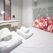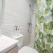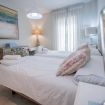 El apartamento, ubicado en planta baja, es confortable y luminoso. Cuenta con dos dormitorios con cama doble de matrimonio y un dormitorio con dos camas individuales, además de un amplio salón-comedor con un sofá cama doble de matrimonio, cocina completamente equipada y dos baños completos.