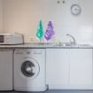 El apartamento cuenta con un amplio dormitorio con cama doble de matrimonio, un salón - comedor, un baño con bañera y una cocina independiente. Es un apartamento muy tranquilo ya que sus ventanas dan a un patio interior que a su vez es muy luminoso.