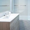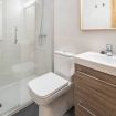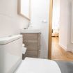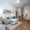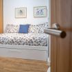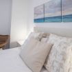 El apartamento se ubica en un edifico de reciente construcción. Está en la planta baja del edificio. Dispone de un amplio salón comedor con cocina americana, desde el que se accede a un pequeño patio, que se puede usar a modo de terraza. En la planta superior se ubica un dormitorio con cama doble de matrimonio, un dormitorio con dos camas individuales tipo nido y un baño completo con bañera.