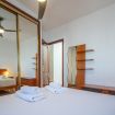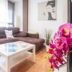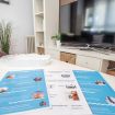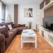 El apartamento se encuentra en la 9 planta de un edificio con ascensor. Dispone de un amplio salón, tres dormitorios con cama doble de matrimonio, una cocina con comedor y un baño con bañera.