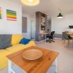 El apartamento se sitúa en un edificio que cuenta con ascensor y acceso para personas con movilidad reducida. Se ubica en la planta 6ª, siendo totalmente exterior y muy luminoso. Dispone de un amplio salón comedor donde poder descansar tras un día de paseo por Cádiz o donde tomar una agradable cena mientras observas la luz de la puesta de sol en nuestra ciudad. Este salón también cuenta con una zona de trabajo, así como el sofá se convierte en una cómoda cama doble. Desde el salón se accede a la cocina que dispone de barra americana y se encuentra totalmente equipada. Así mismo también cuenta con un dormitorio con cama doble de matrimonio y un baño con ducha.