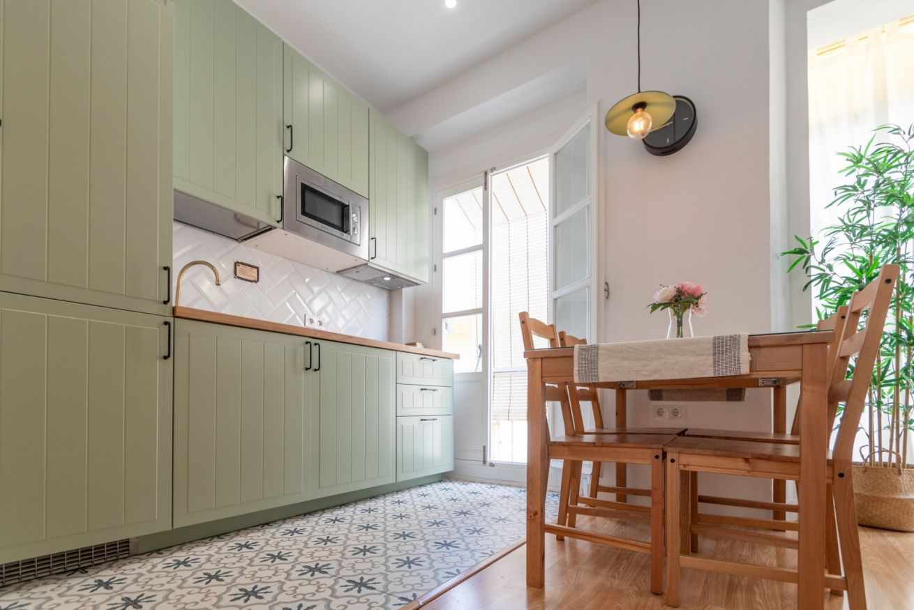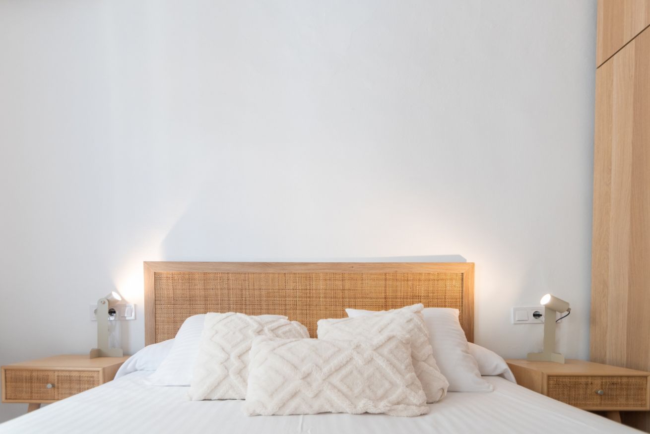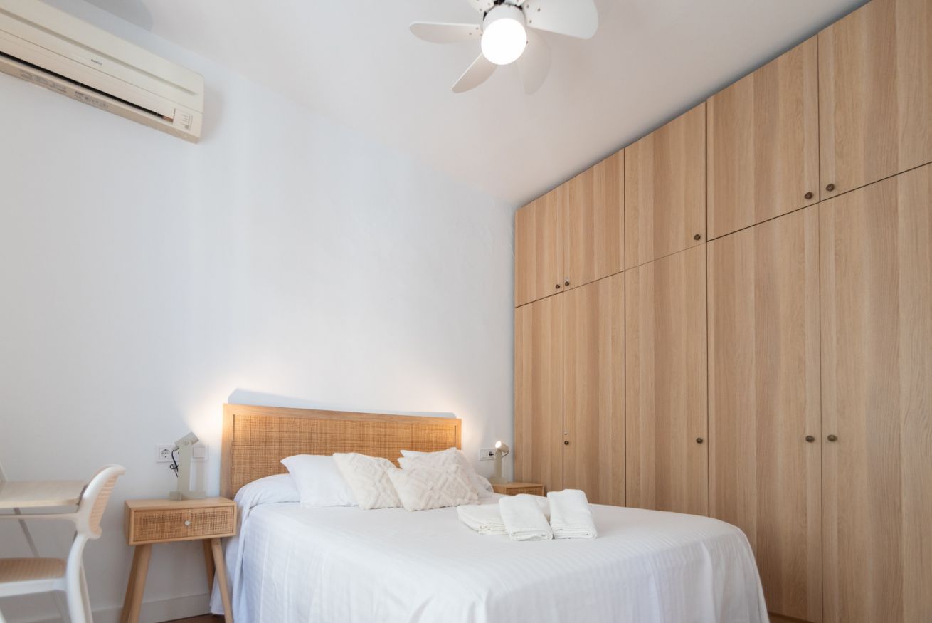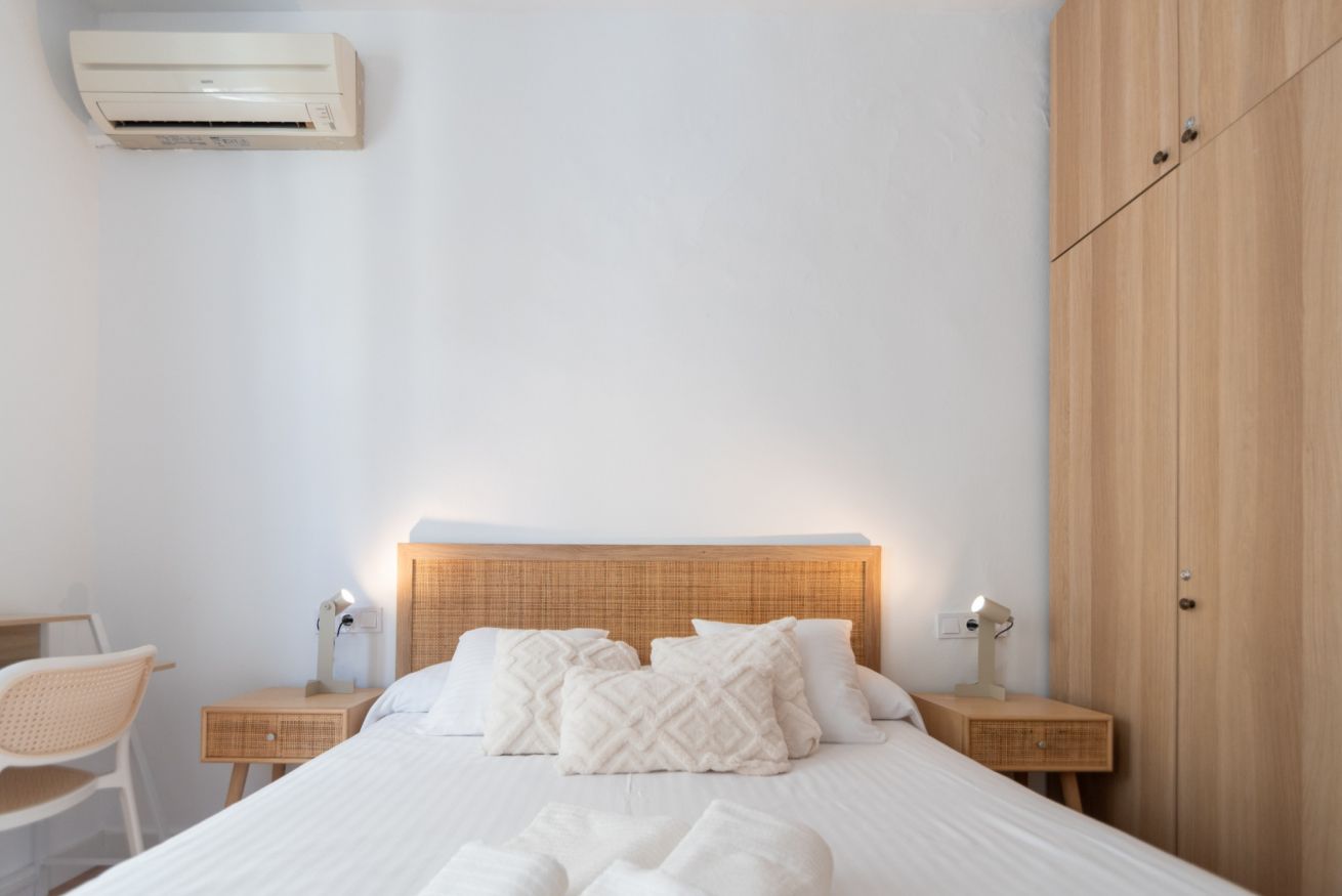 El apartamento dispone de tres dormitorios con camas dobles, un baño completo y un aseo independiente, y un luminoso salón con cocina americana totalmente equipada con microondas. Para garantizar tu confort en cualquier época del año, cuenta con aire acondicionado tanto en el salón como en cada uno de los dormitorios.